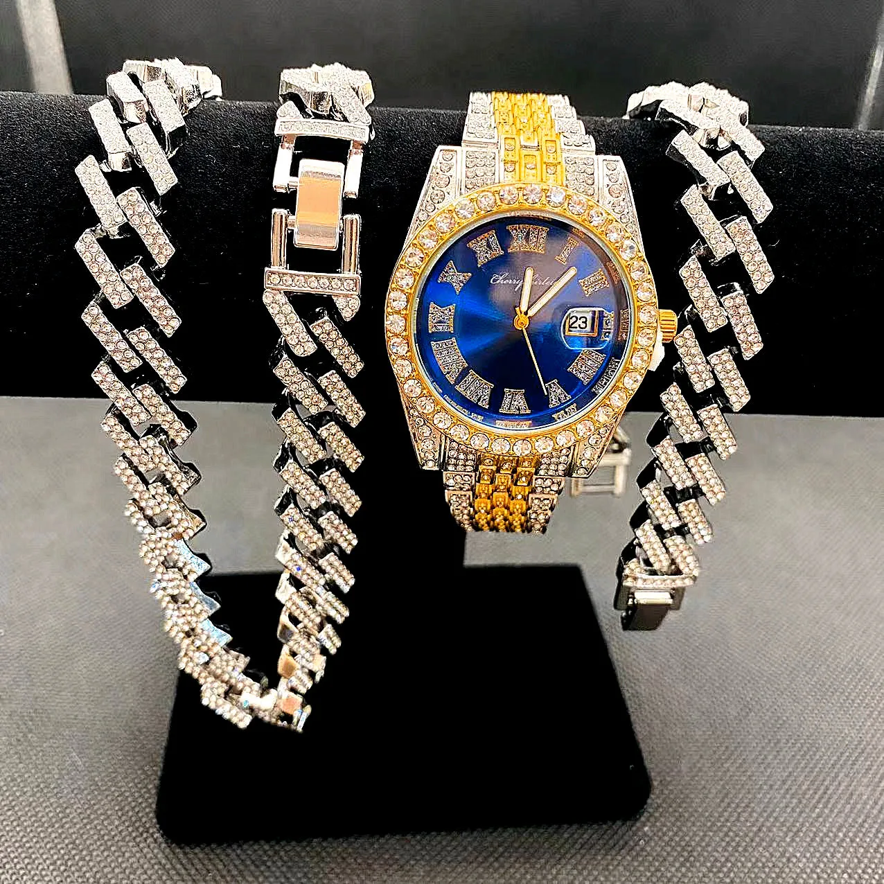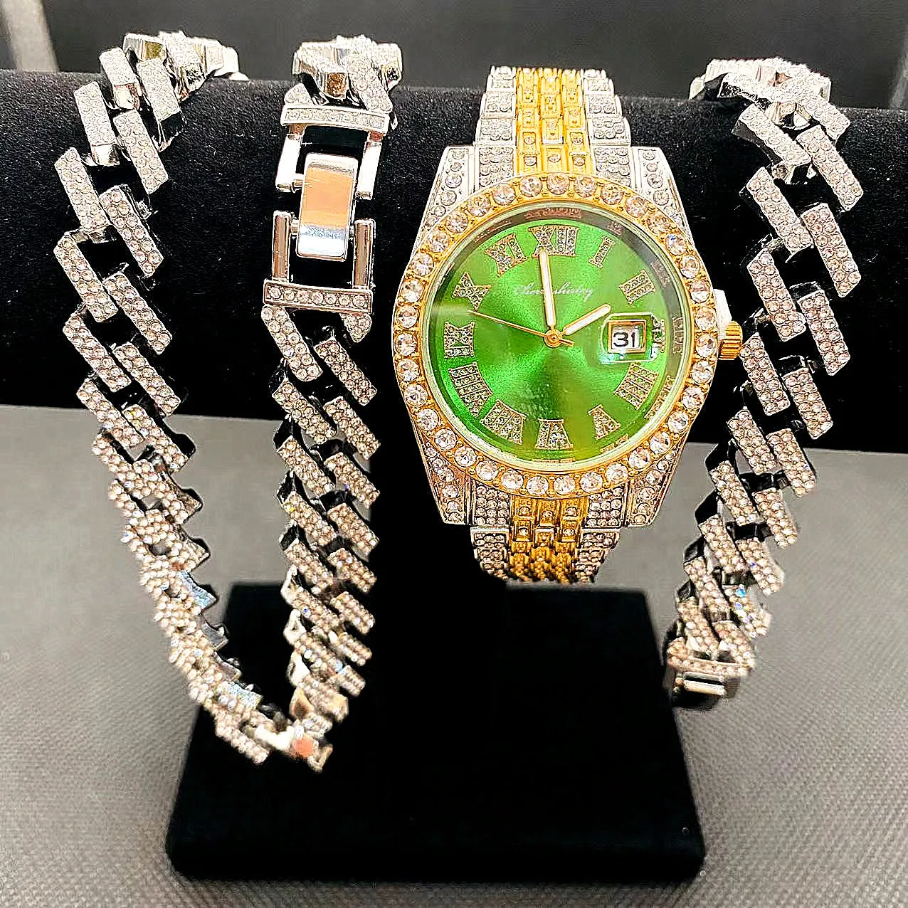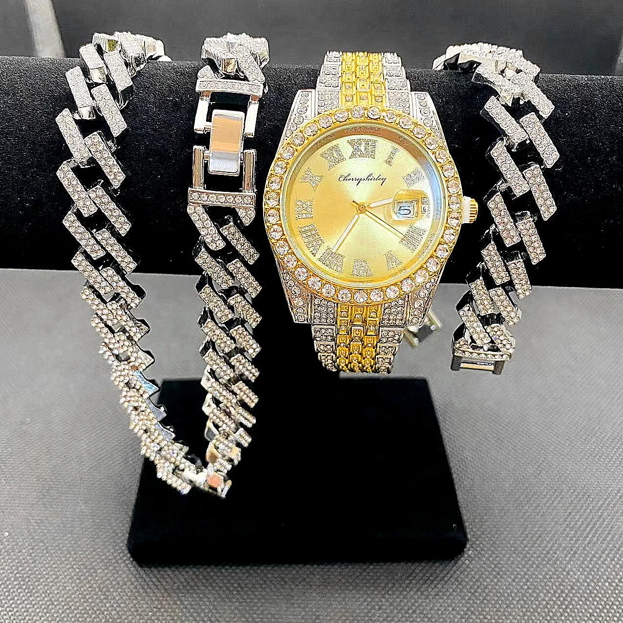 Be the first to review “3pcs Luxury Iced Out Watch & Necklace Set”