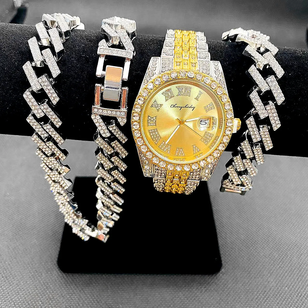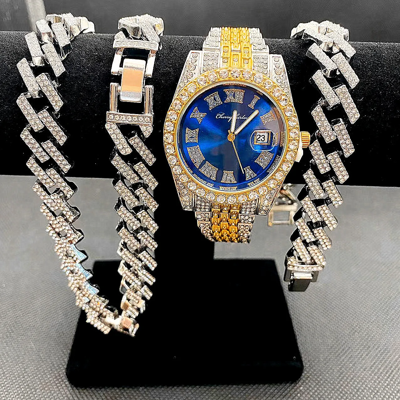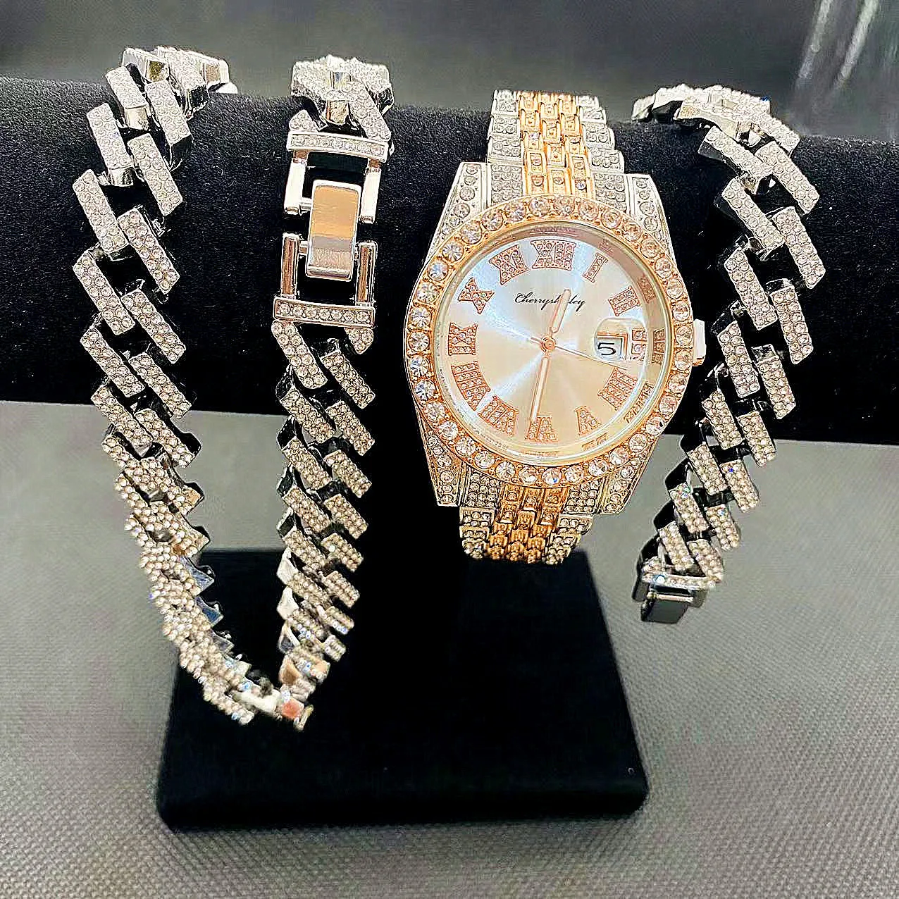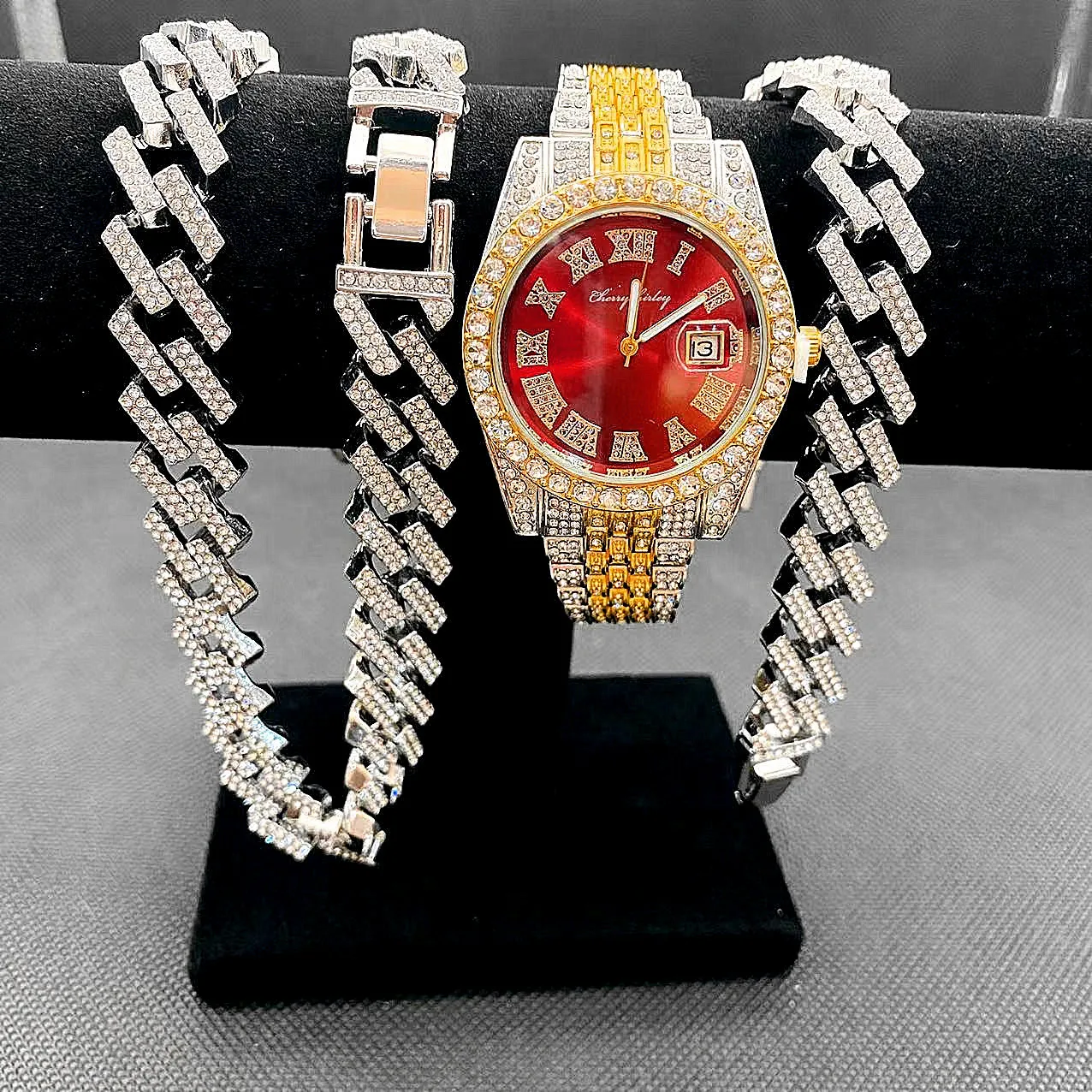 Be the first to review “3pcs Luxury Iced Out Watch & Necklace Set”