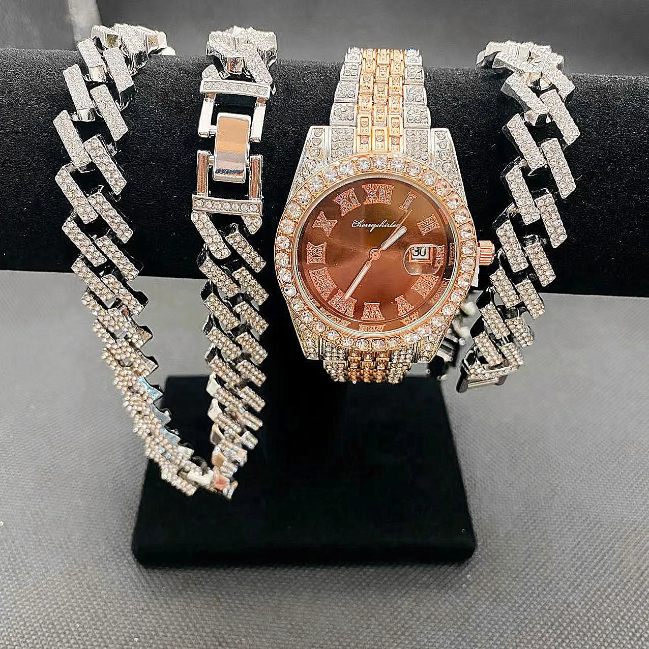 Iced out watch with Iced out bracelet