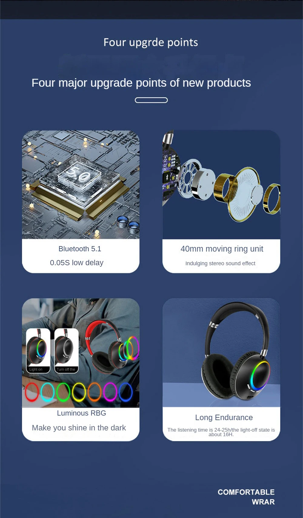 400mah Foldable Earphone Adjustable Convenient Computer Headphone For Gamers Support Tf Card Consumer Electronics 5.1