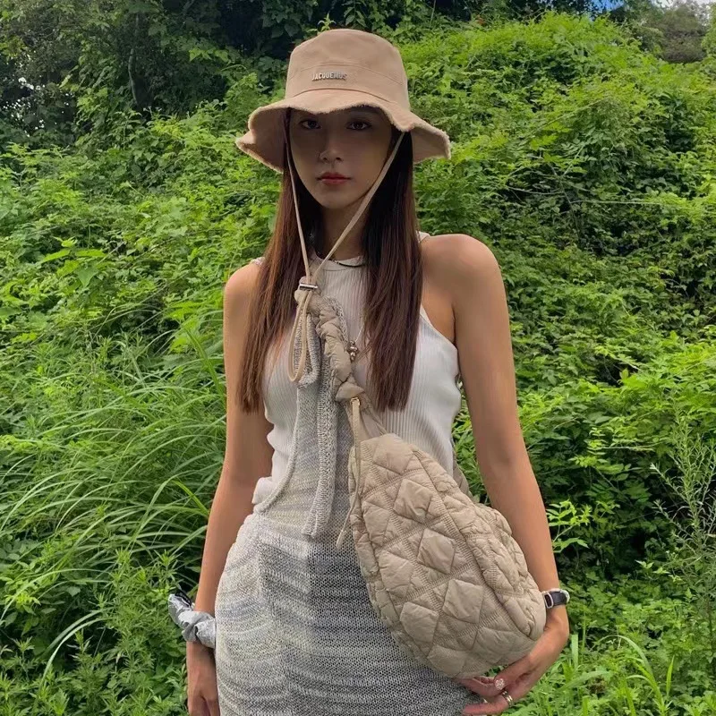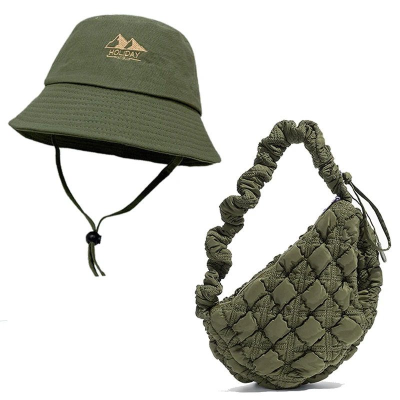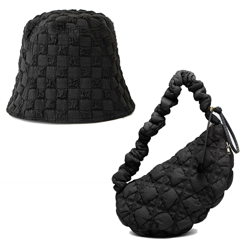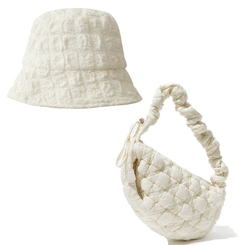 Fashion pleated Bucket hat and pleated bag set, large capacity single room bag