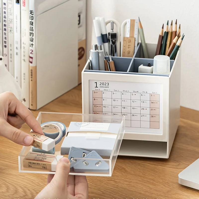 Be the first to review “360° Rotary Pen Holder with Desk Calendar – Stationery Organizer”