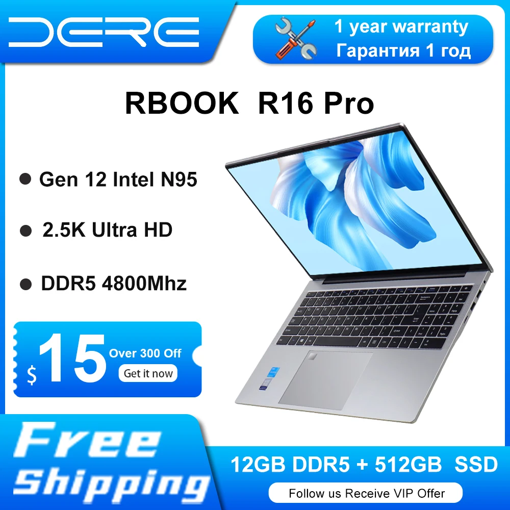 DERE Laptop 2023 New R16 Pro16-inch 2.5K IPS Full HD Intel N95 Processor 3.4GHz 12GB DDR5 RAM +512GB SSD Windows 11 Notebook