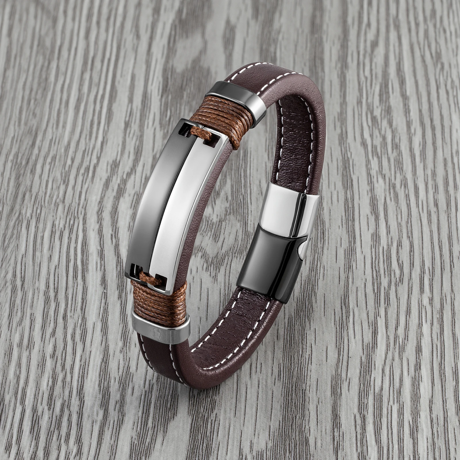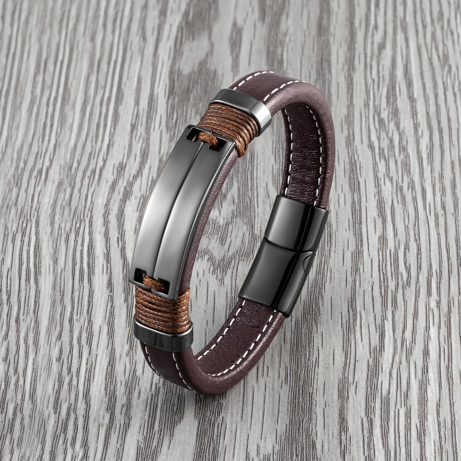 Name: Men’s Leather Simple Design Neutral Accessories Hand-woven Bracelets Material: Genuine leather Material:316L Stainless steel Quality: 100% Brand New High Quality