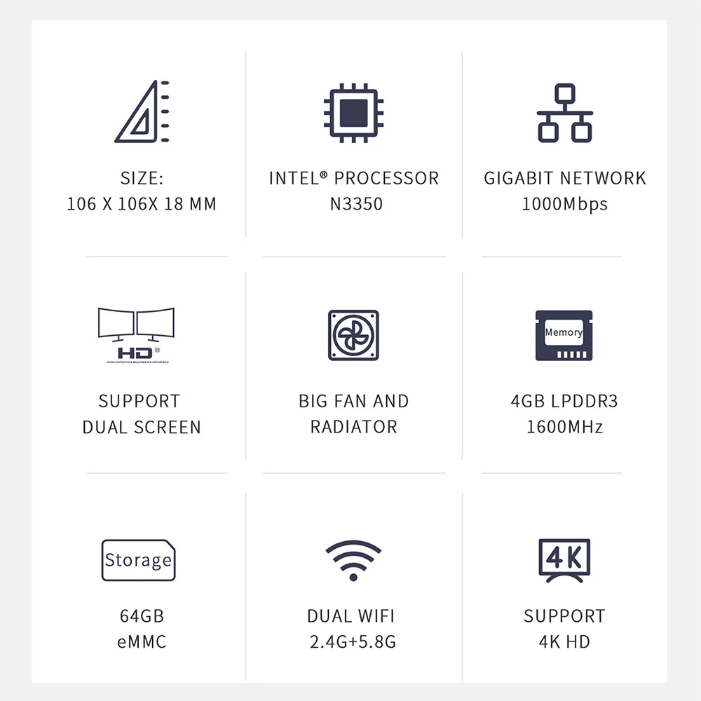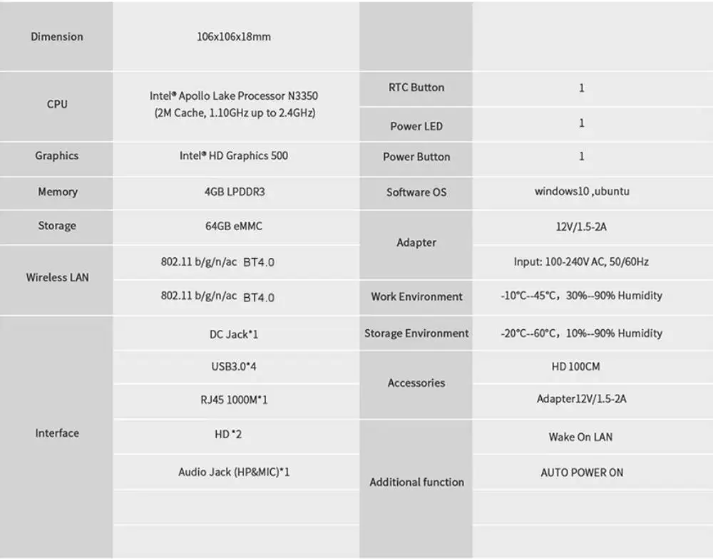 Beelink T4 Pro Mini PC Intel Apollo Lake Processor N3350– CPU: Intel Apollo Lake N3350 (2M Cache, 1.10GHz up to 2.24GHz)