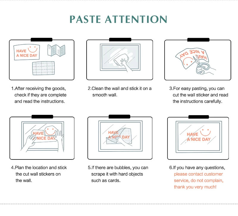7. Packaging includes: 1 set of wall stickers. If you need more, please contact us.