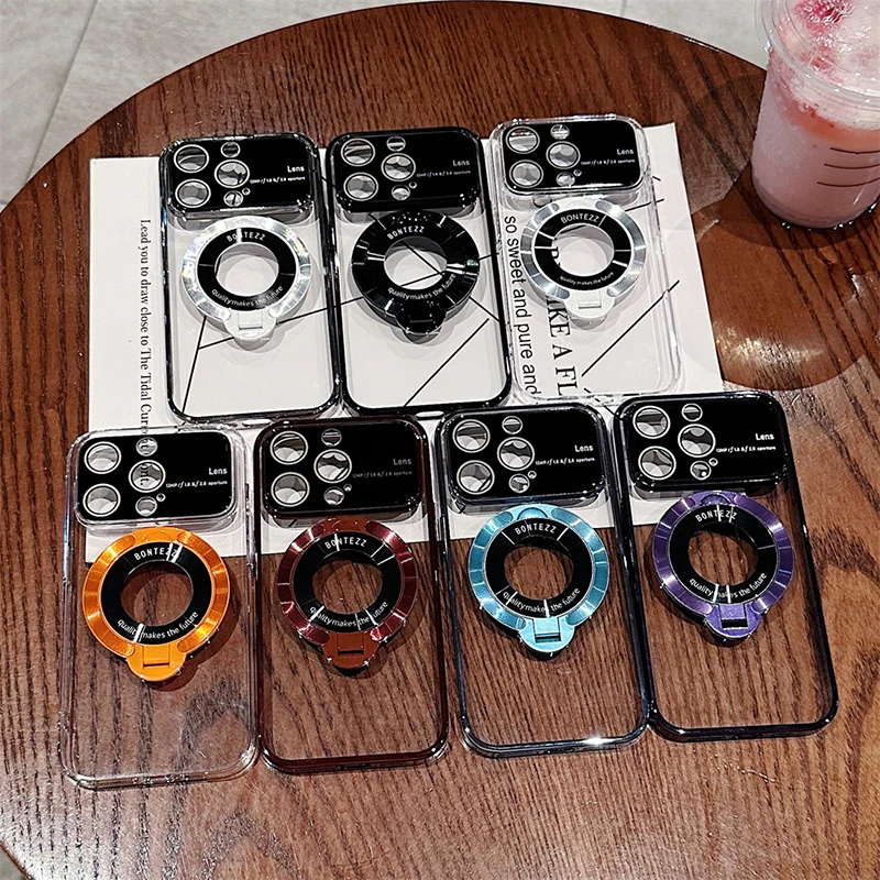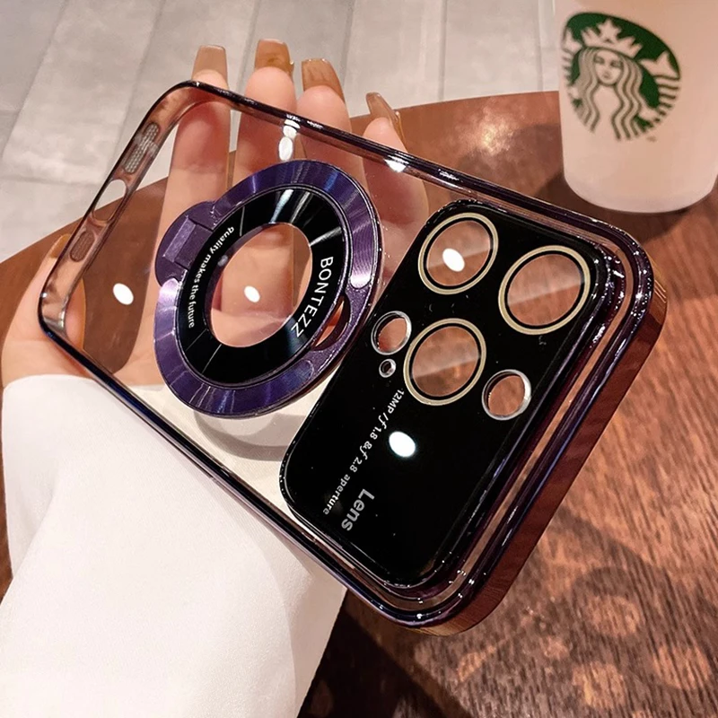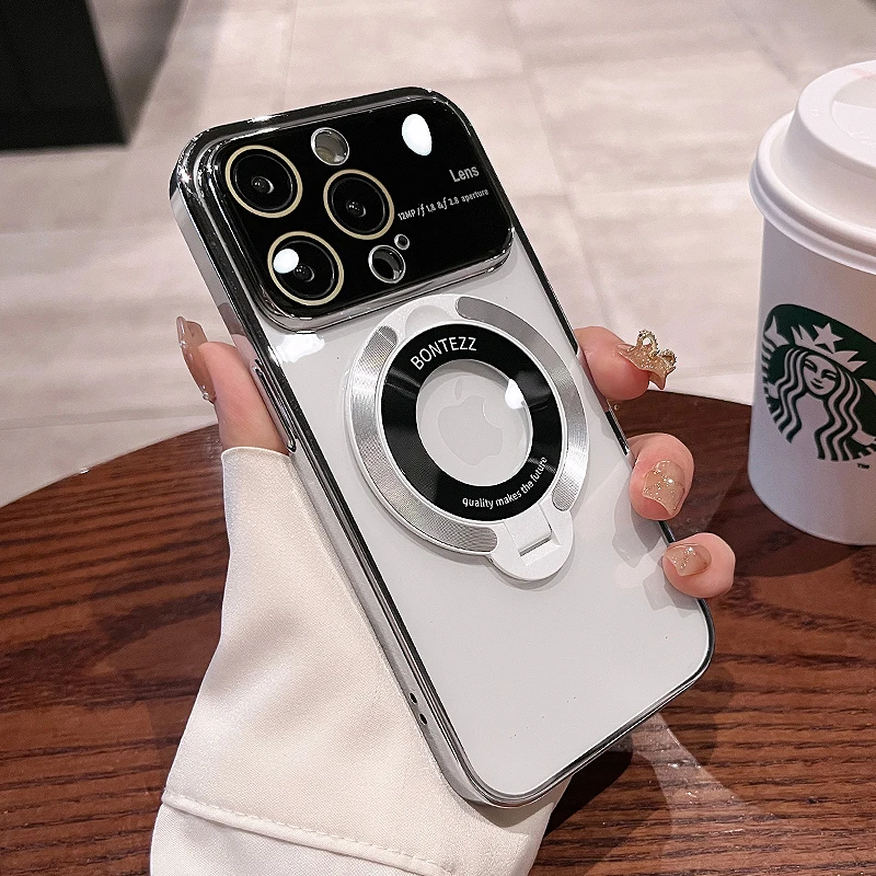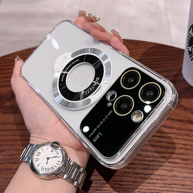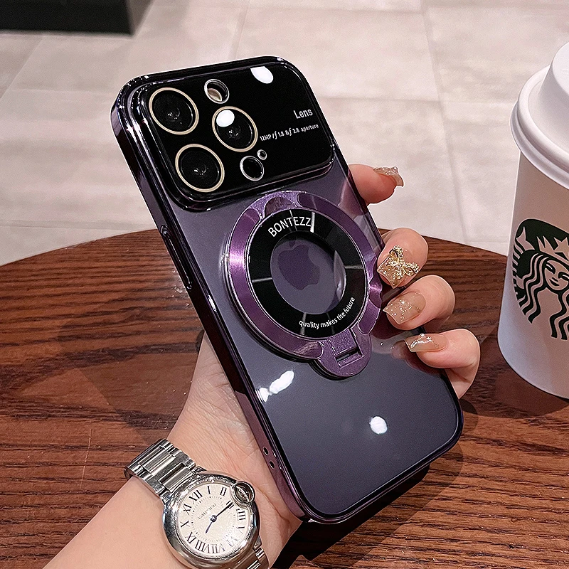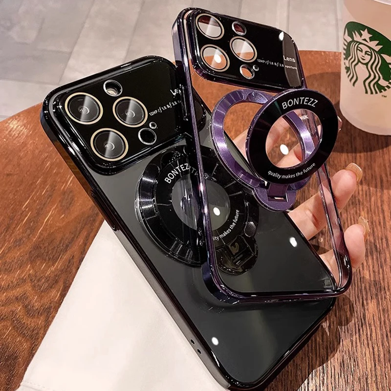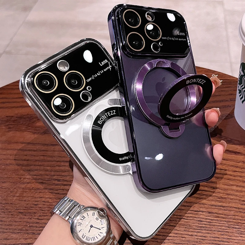 Luxury For Magsafe Plating Case For iPhone 14 13 12 11 Pro Max Plus Mini Large Window Stand Holder Magnetic Clear Cases Cover