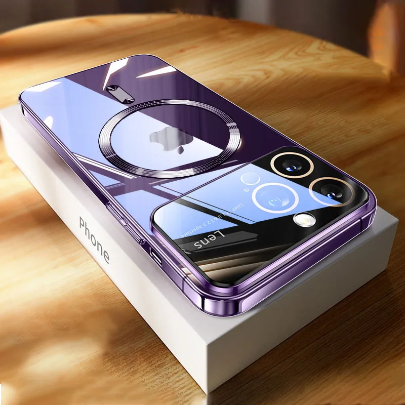 Luxury Transparent Magnetic Wireless Charging Case For Magsafe For iPhone 14 13 12 11 Pro Max 14Plus Plating Soft Silicone Cover