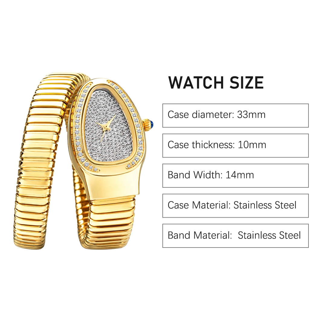 MISSFOX Women’s Watches Snake Shape Luxury Wrist Watch For Women Steel Unique Gold Quartz Ladies Watch Clock Relogio Feminino