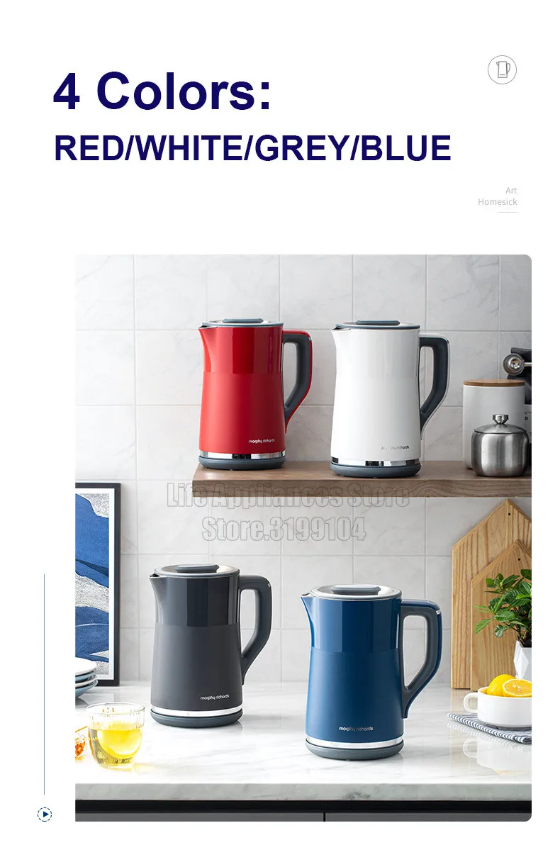 Morphy Richards Electric Kettles 1.5L Smart Automatic Heat Preservation Portable Electric Kettle Household Kitchen Appliances