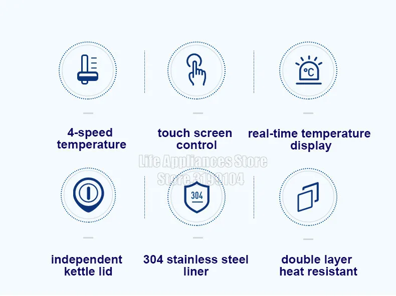 Safety Auto-Off Function,Overheat Protection,Anti-dry Protection,Water level indication,Temperature control,Temperature support,Digital display,Sound signal,Shutdown when removed