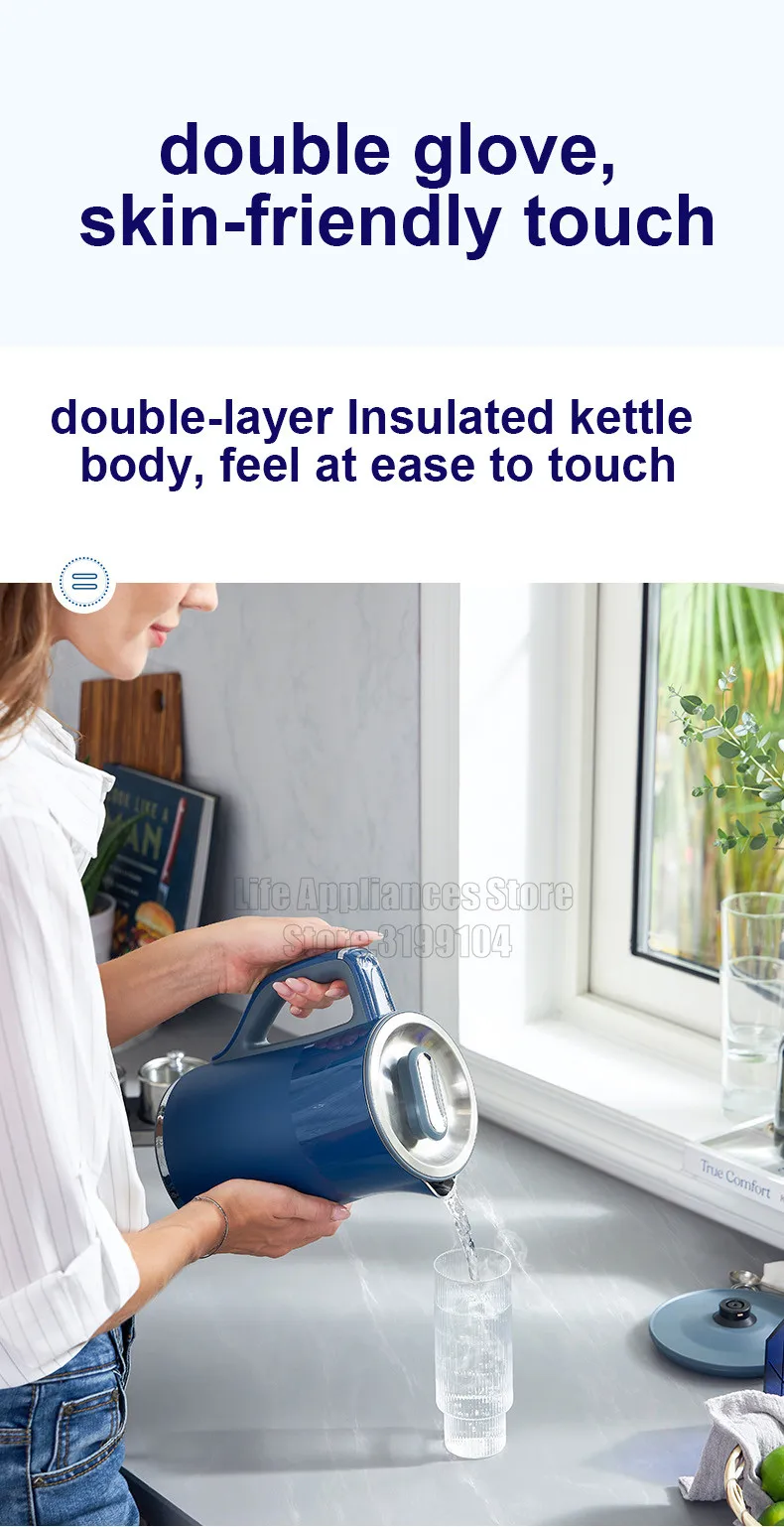 ●Silent boiling water, comfortable to hold, smooth water pouring, and separable lid for easy cleaning.
