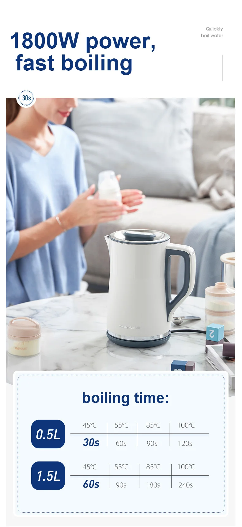 ●1800W power, 1.5L capacity, fast boiling;