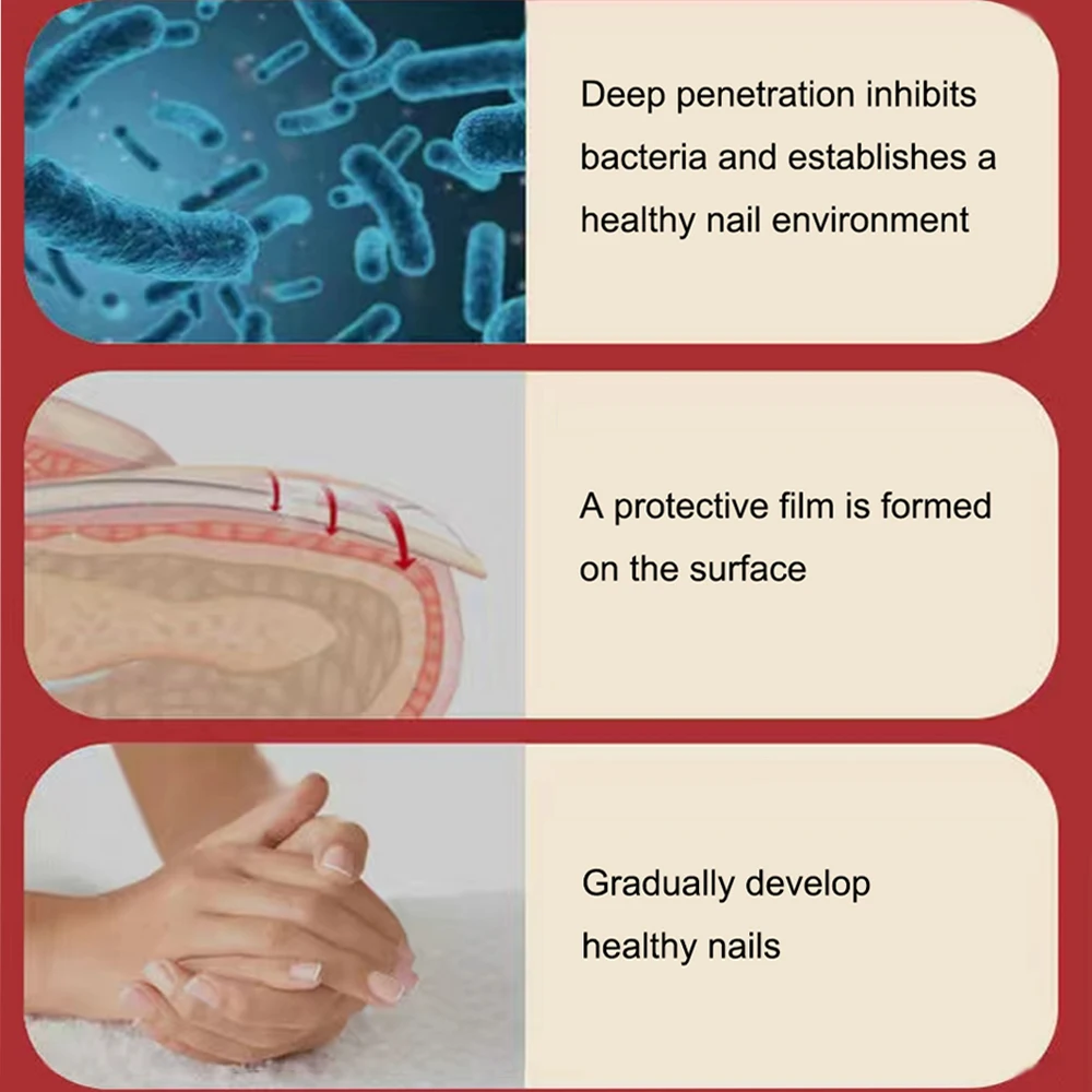Deep penetration inhibits bacteria and establishes a healthy nail environment.A protective film is formed on the surface.Gradually develop healthy nails.