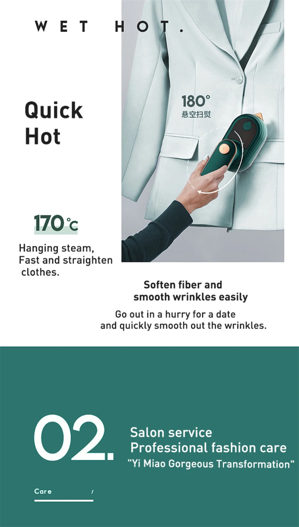 Powerful steam ironing efficiency, a few minutes a day, makes life more refined, removes wrinkles on clothes, shirts, curtains, bed sheets and other fabrics, and can be easily inserted into suitcases and backpacks, and easily carried anytime and anywhere.