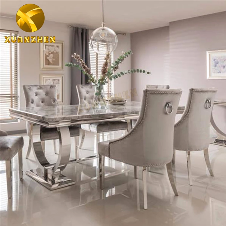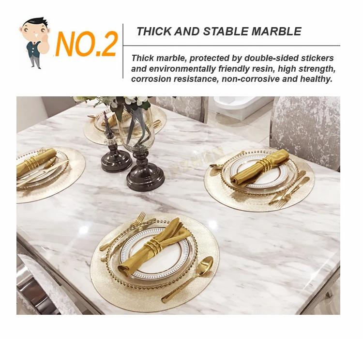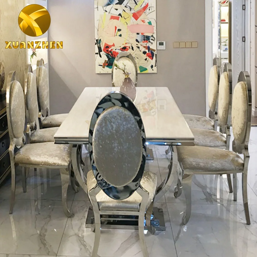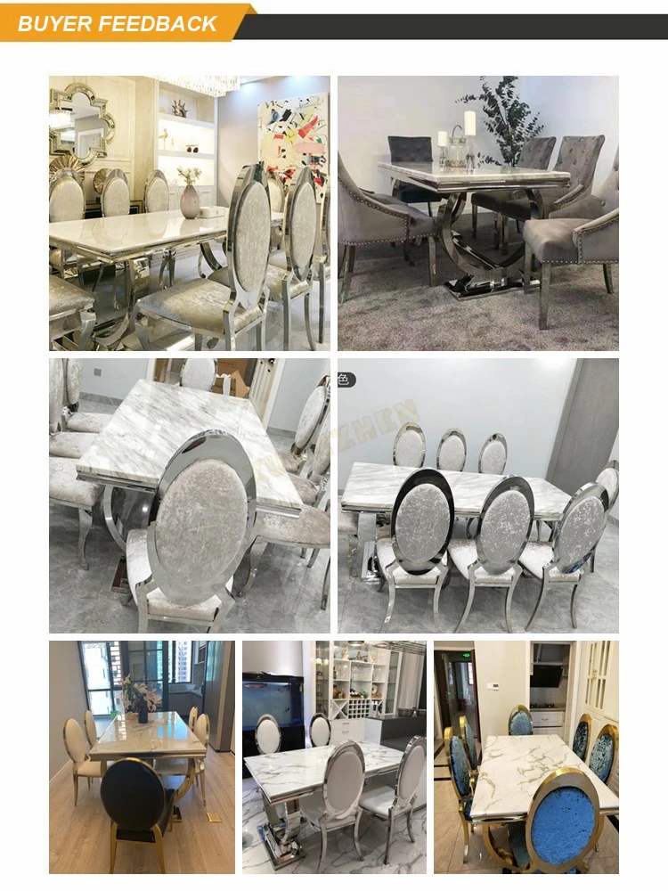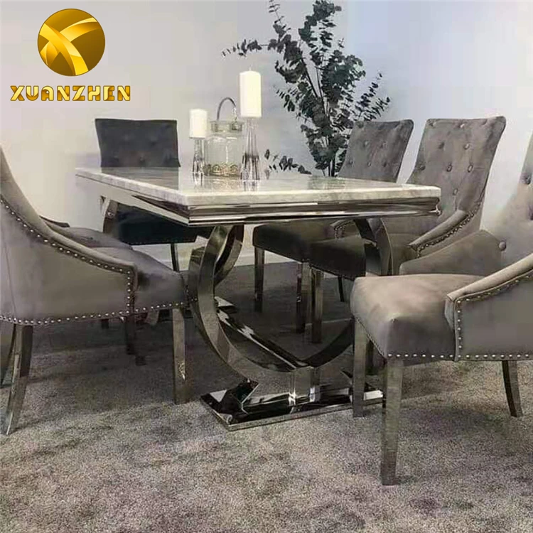 Product name Restaurant furniture metal dining room set dining table set marble dining table with 6 chairs for home DT004
