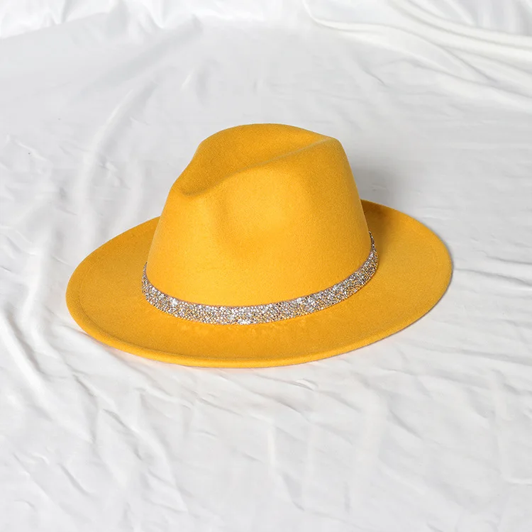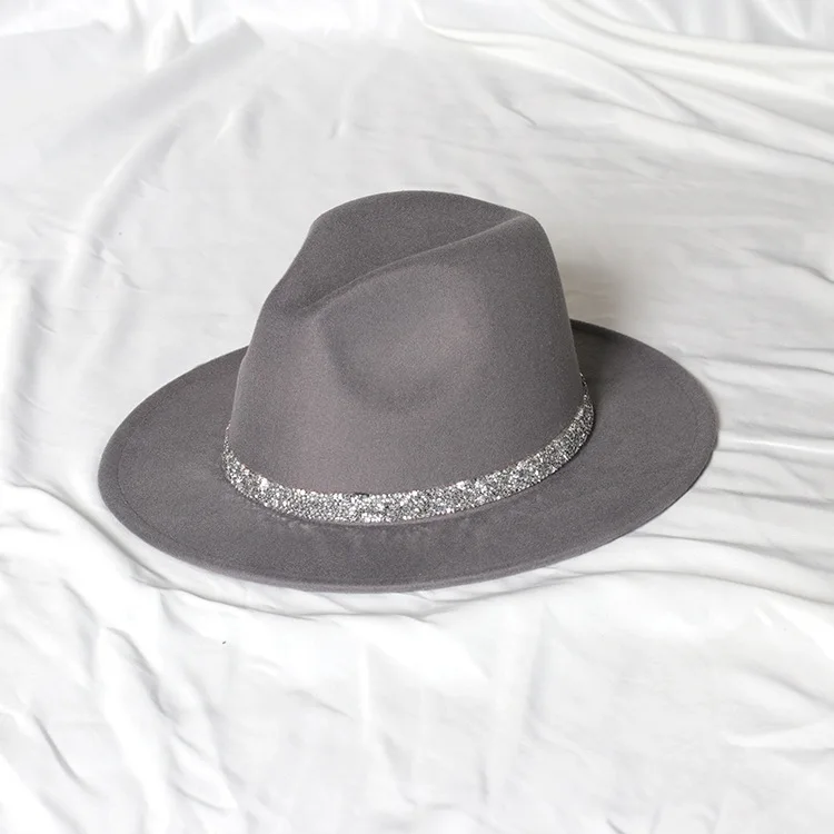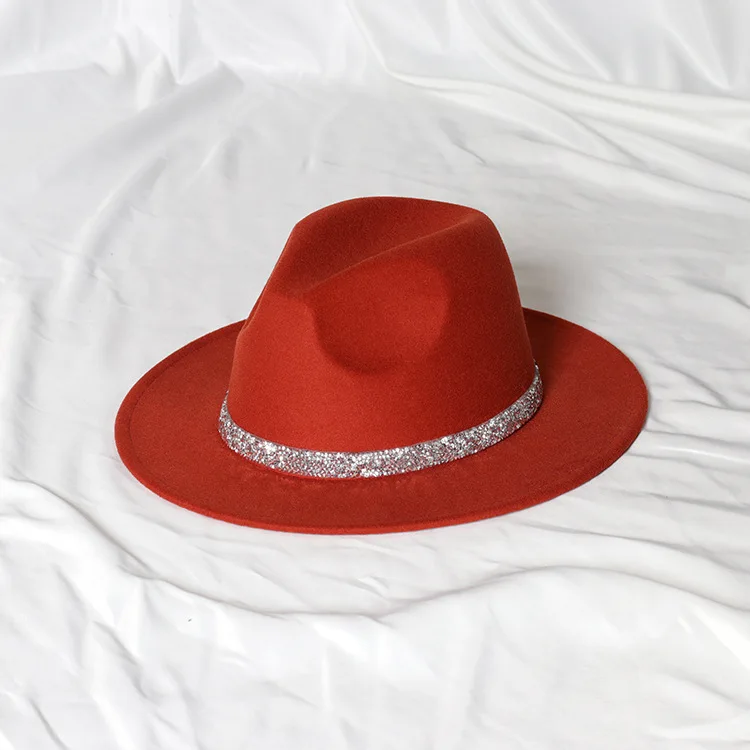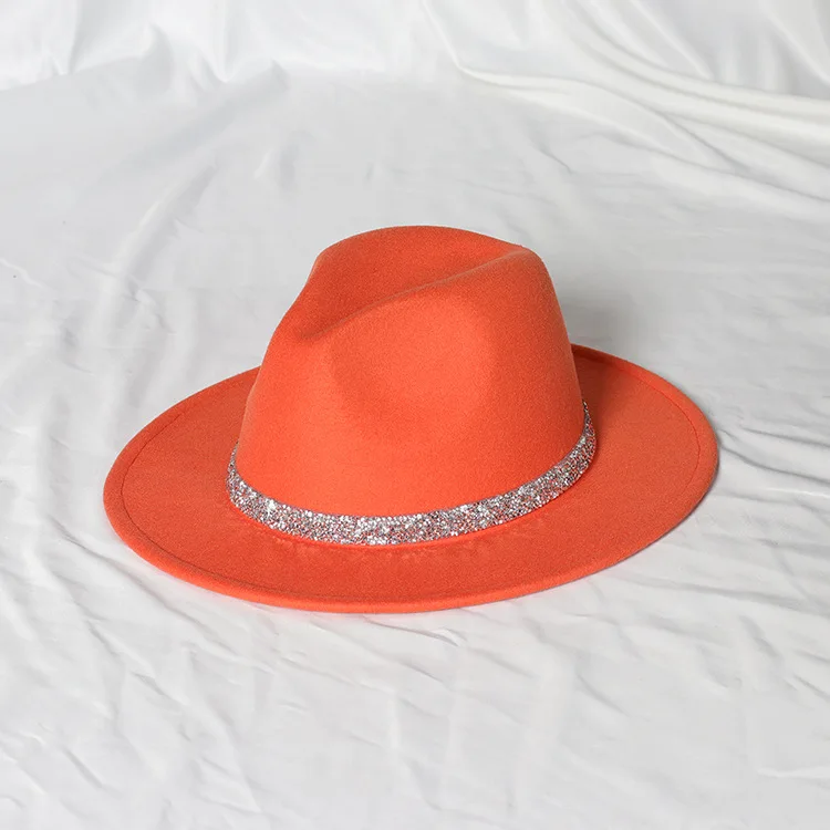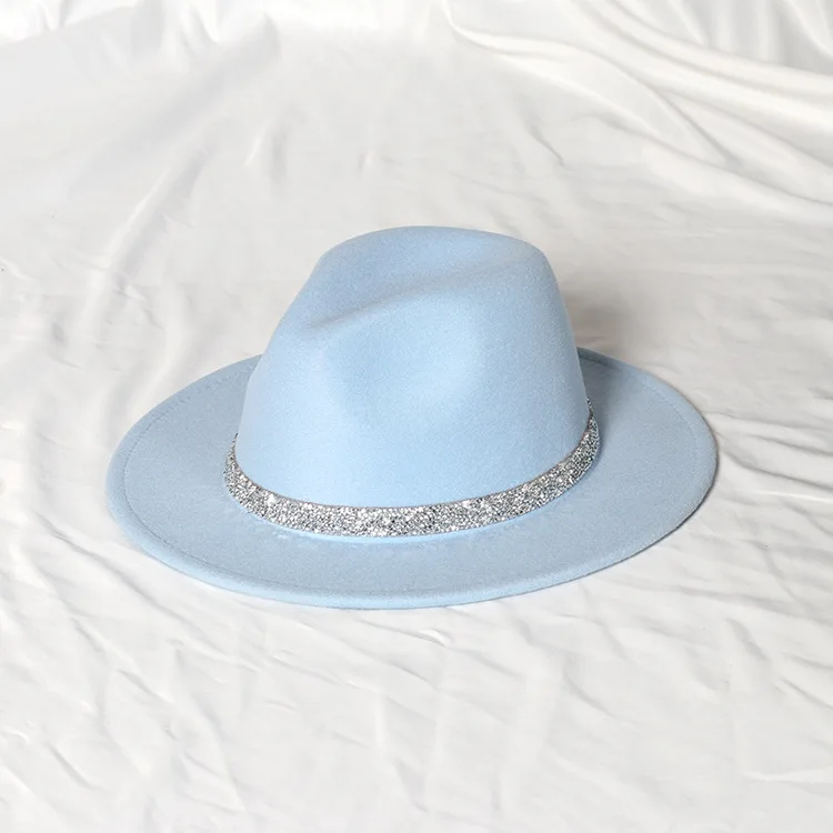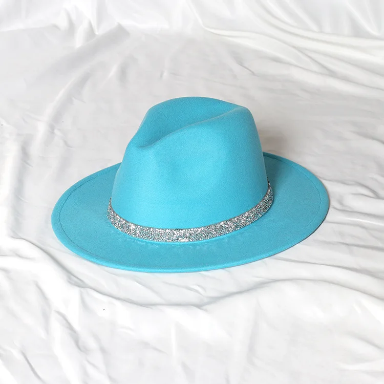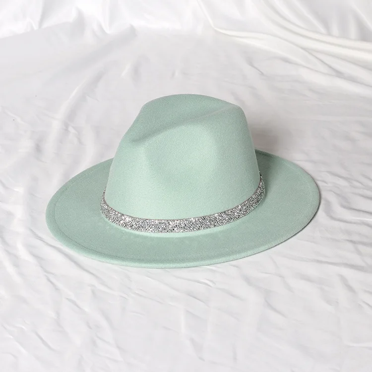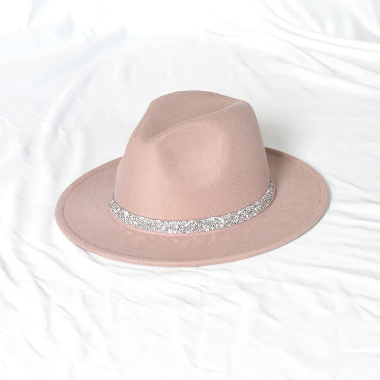 Warm fedoras hat sparkling accessories British style men and womenmatching jazz woolen hat new flat brim hat