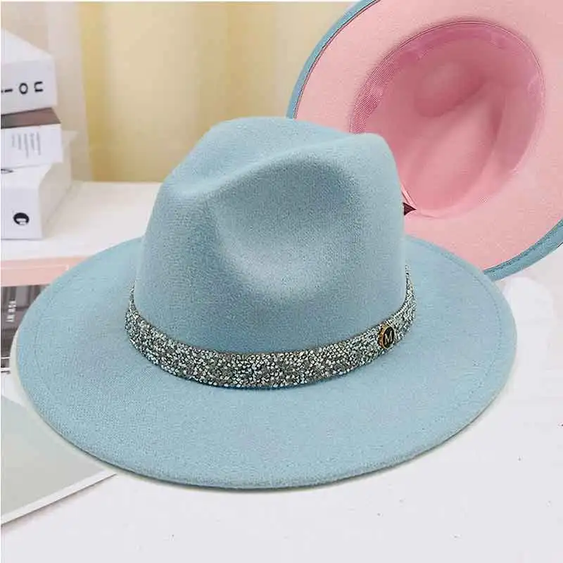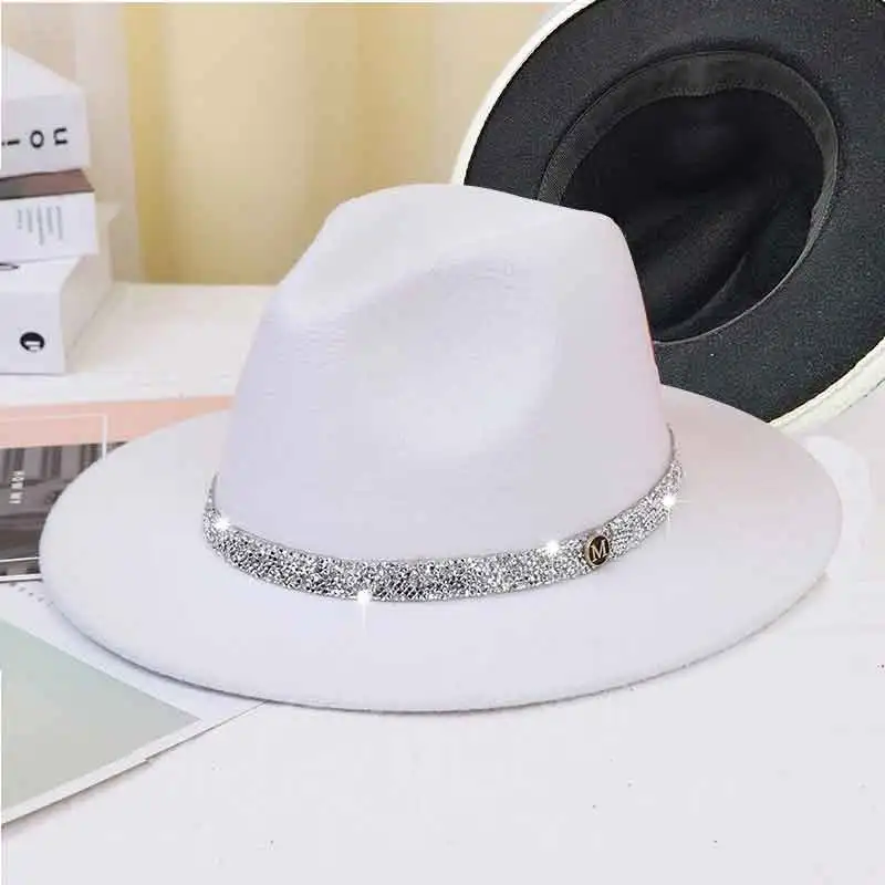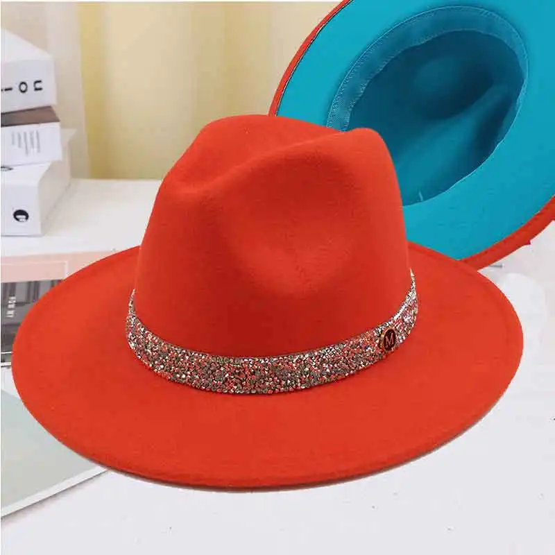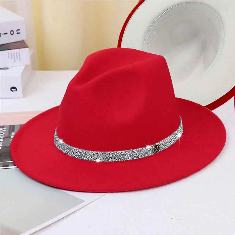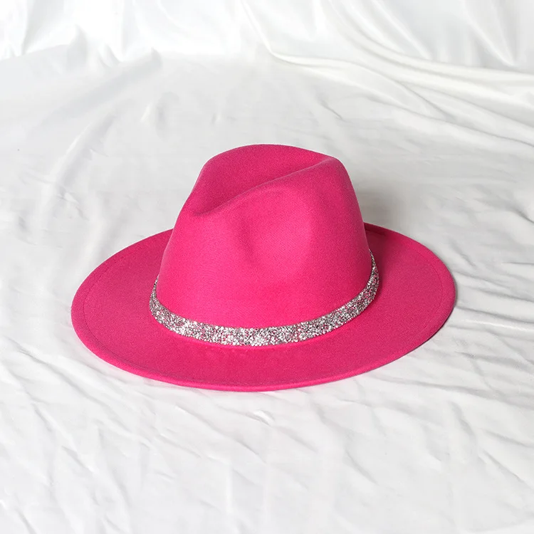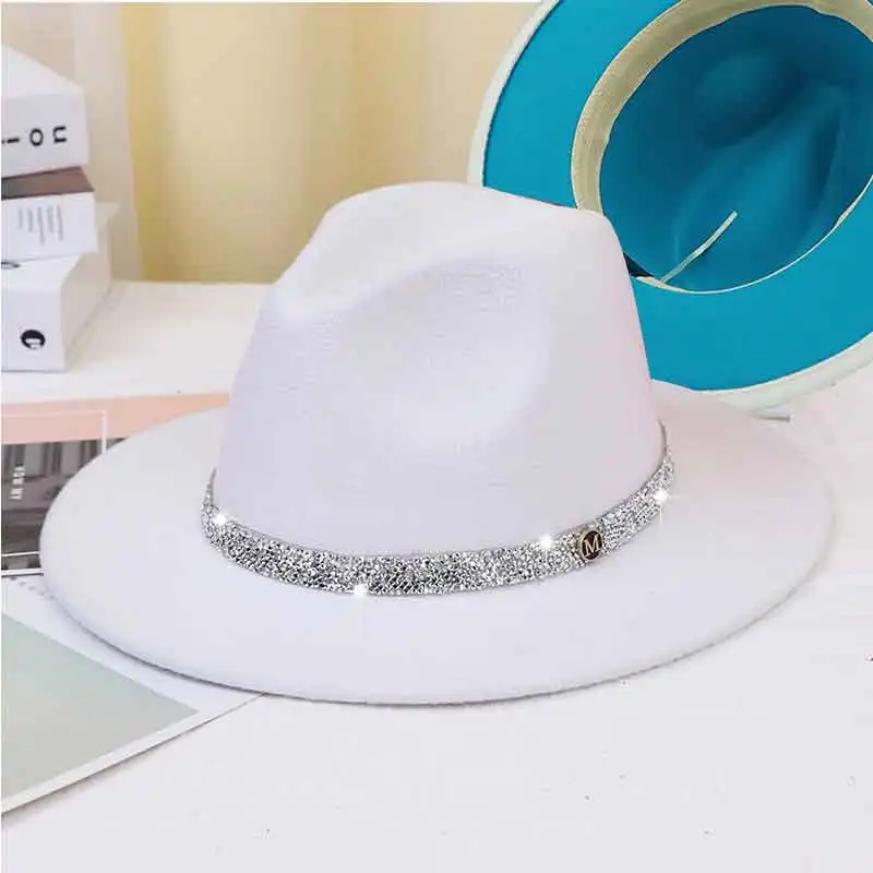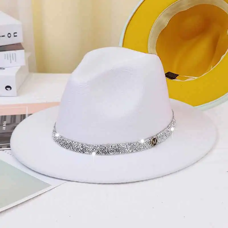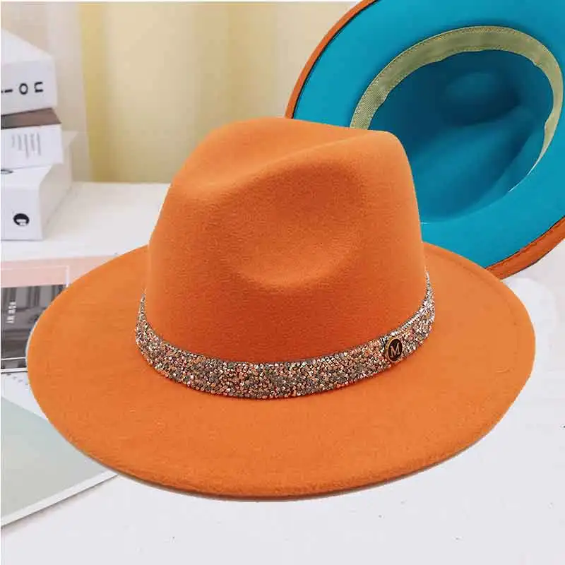 Warm fedoras hat sparkling accessories British style men and womenmatching jazz woolen hat new flat brim hat