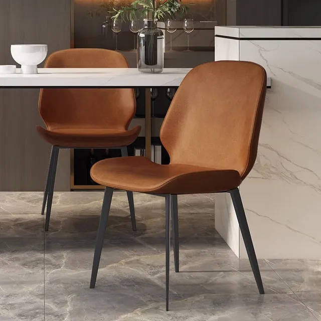 Modern Nordic Dining Chair – Leather Orange (A2)